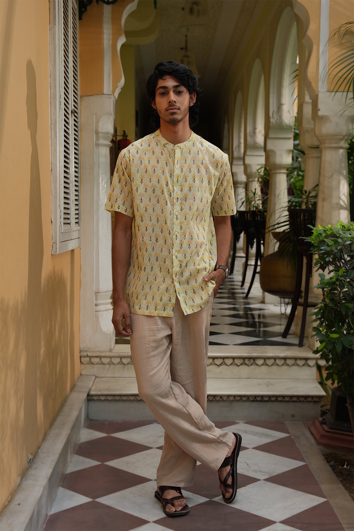 COLOUR: Green Neck :- Band Collar Sleeve :- Half Sleeve Fit :- Regular Fit
